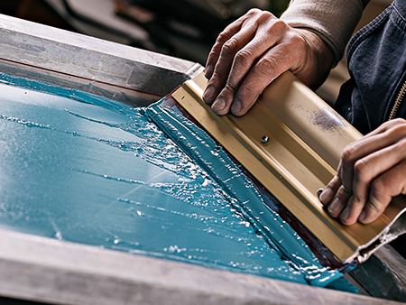 Også kjent som silketrykk. En trykkmetode hvor trykkfarge presses gjennom en stramt oppspent finmasket duk. Motivet er markert slik at det dannes åpne og tette områder på duken.